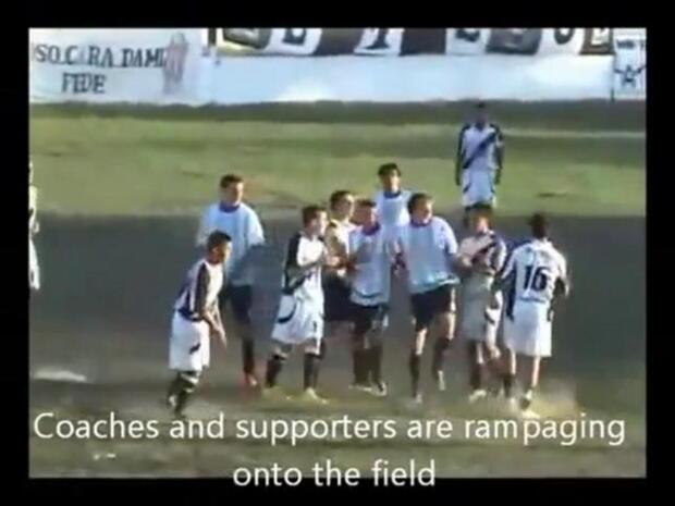 After two players were sent off in the first half, the second half played out with a series of dangerous fights, resulting in a huge brawl involving players, coaches and fans.